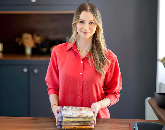 Apasionada por transformar el caos de la cocina en organización, creó el Método Freezer Inteligente™ — la forma más práctica de tener comidas saludables listas, con planificación y cero desperdicio.
